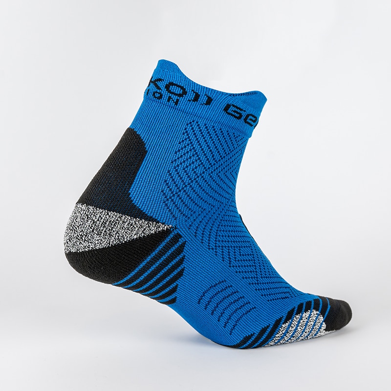 Le calze da running Gecko combinano leggerezza e ammortizzazione per le corse a lunga distanza, con rinforzi nei punti chiave.
